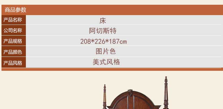 阿切斯特 美式乡村实木床1.8米 美式婚床1.5米卧室双人床221-F02