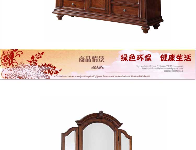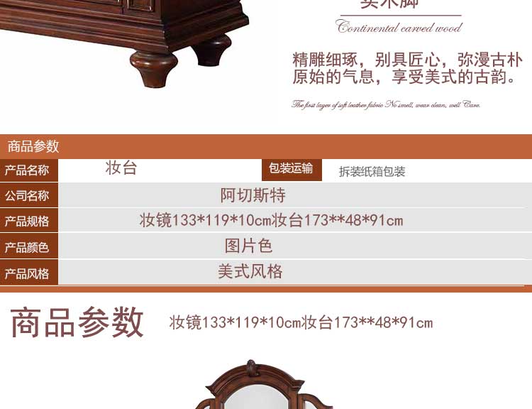 阿切斯特 家具美式乡村实木梳妆台 卧室储物柜子收纳柜221-F05