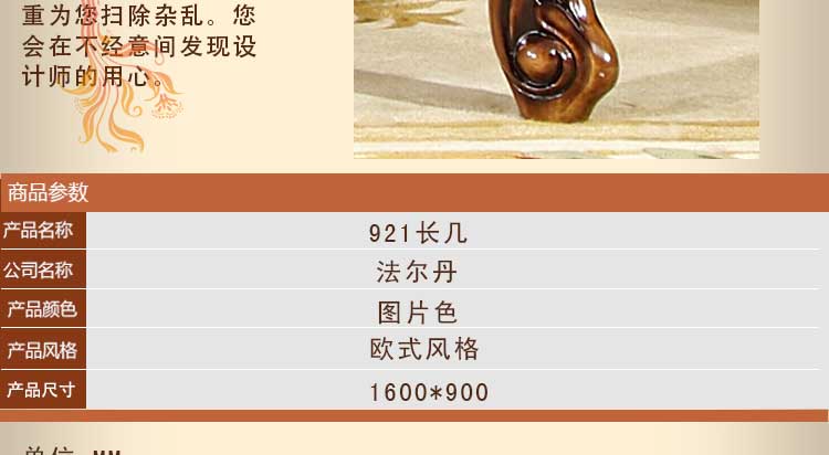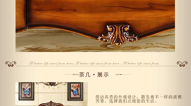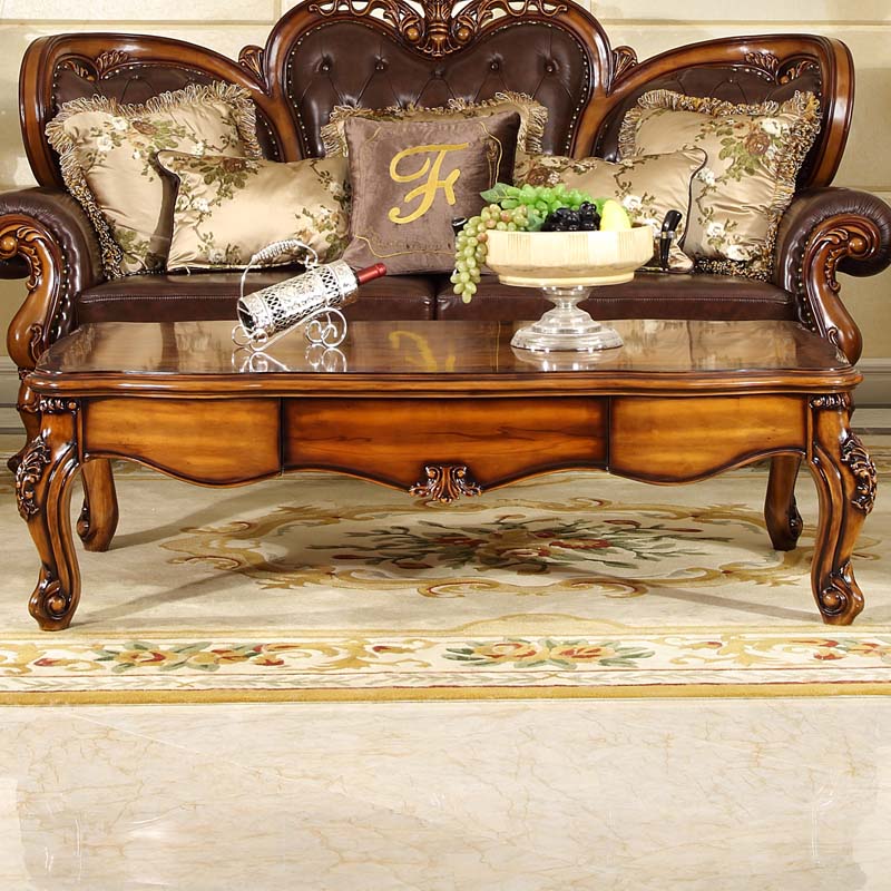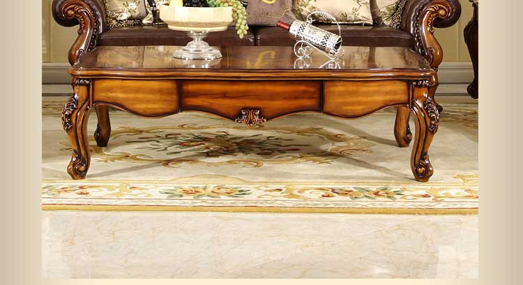 法尔丹欧式茶几实木雕花客厅复古长几茶桌 欧式大理石茶几921长几