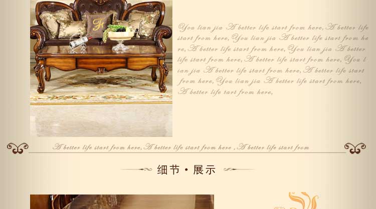 柔和的色调,大气典雅的外形,精巧的装饰点缀着每一个细节,隐隐浮现含蓄与稳重,撩拔着一种新的生活姿态,追求一种繁复夸饰,富丽堂皇,气势宏大,富于动感的艺术境界。高贵的生活品质,雍容华贵的内在气息,张扬的造型征服心灵,延续欧式的浪漫与精致!