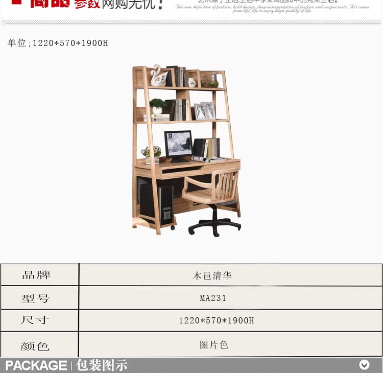 木邑清华 新款中式书台 书房书台 板木结合书台 MS213