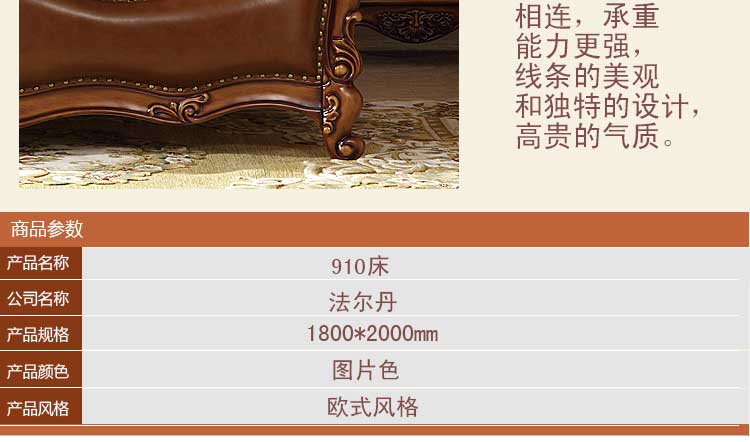 法尔丹新款欧式床双人床欧式实木床高档雕花公主床910