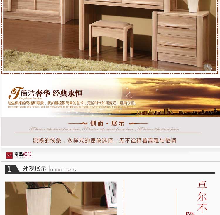 木邑清华 新中式梳妆台带妆镜组合卧室化妆桌柜家具 MC21