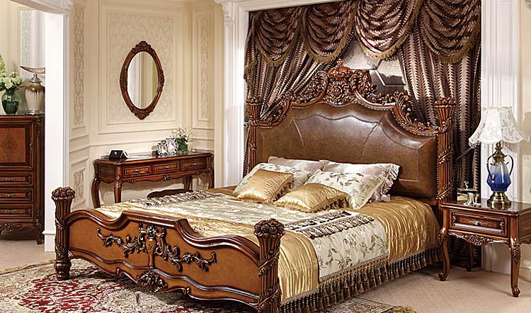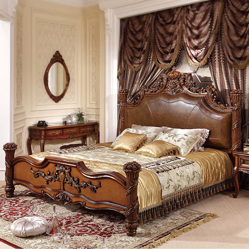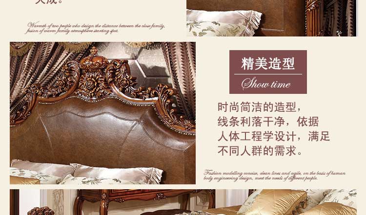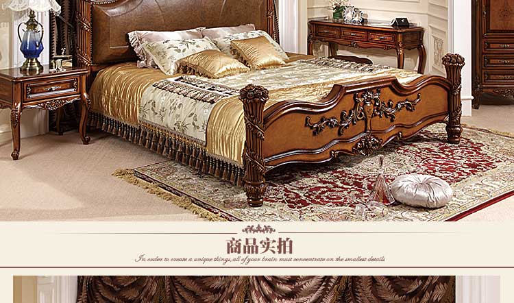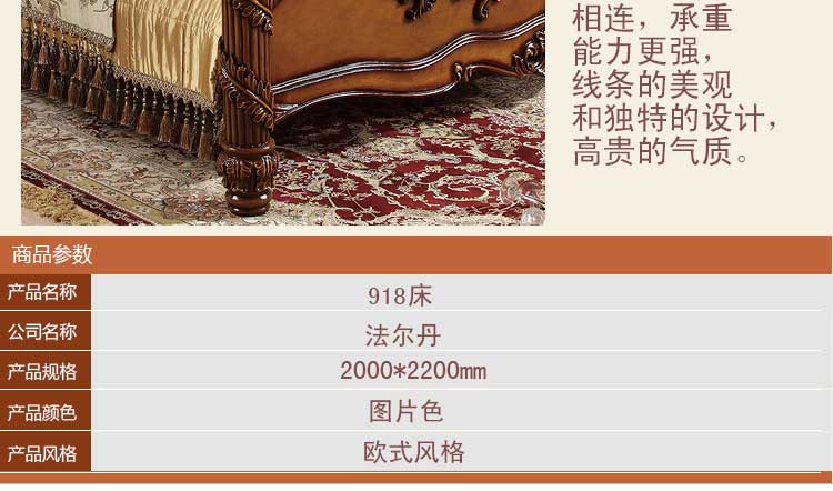 法尔丹实木床欧式床真皮双人2米床特价卧室实木家具918床