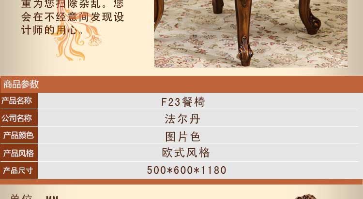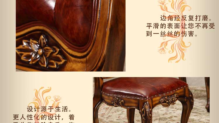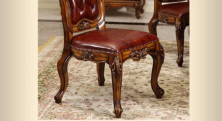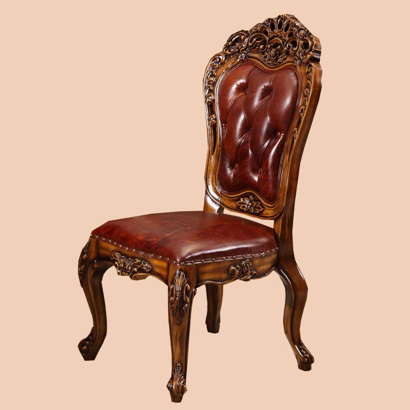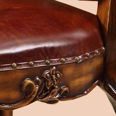 法尔丹欧式实木餐椅新古典洽谈椅雕花真皮麻将椅高端酒店椅子F23餐椅