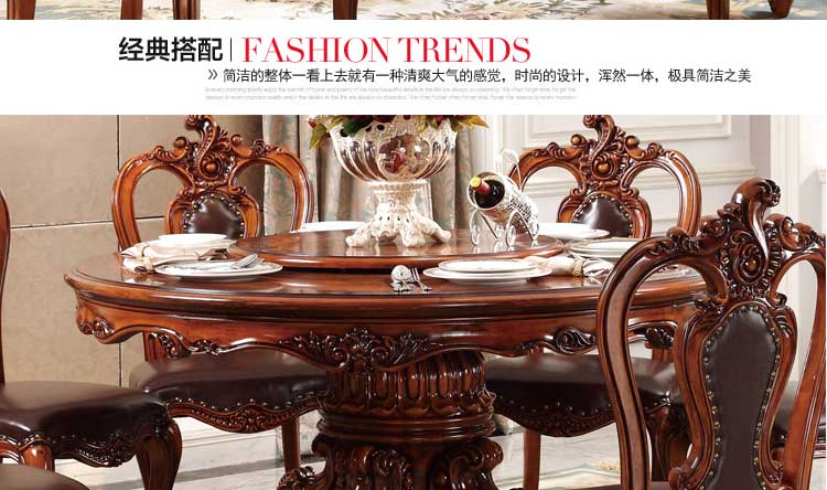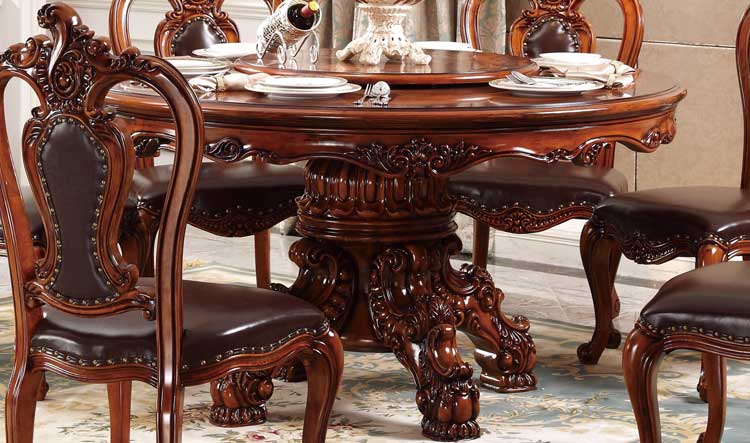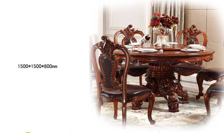 法尔丹欧式餐桌实木圆桌深色圆桌餐桌餐厅家具圆形饭桌A66圆餐台