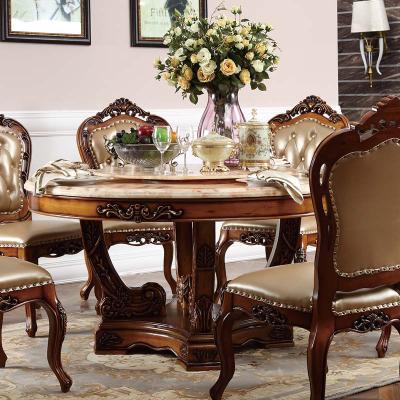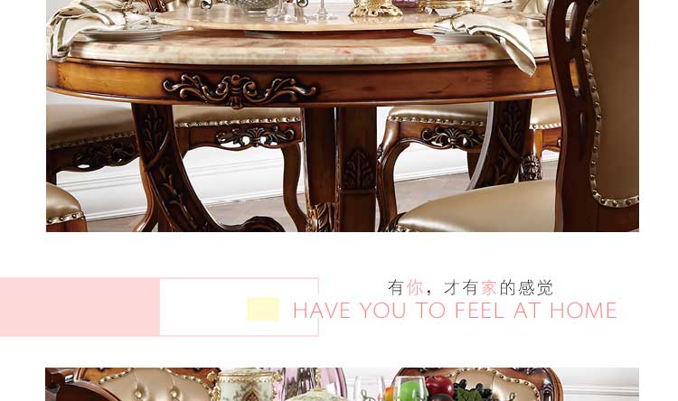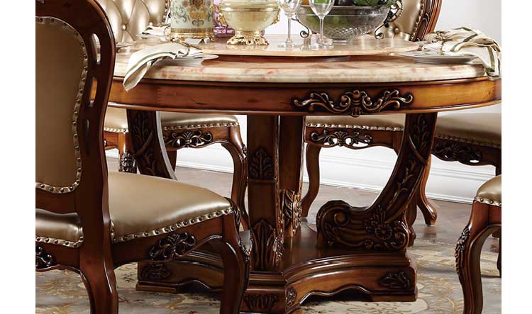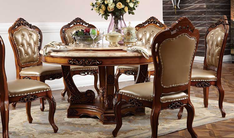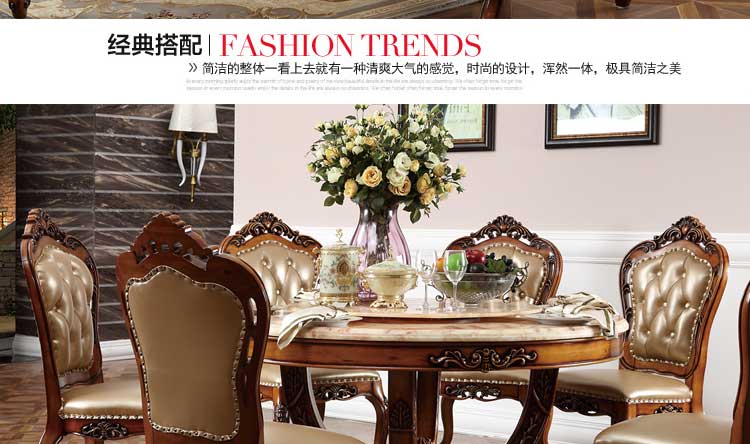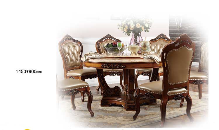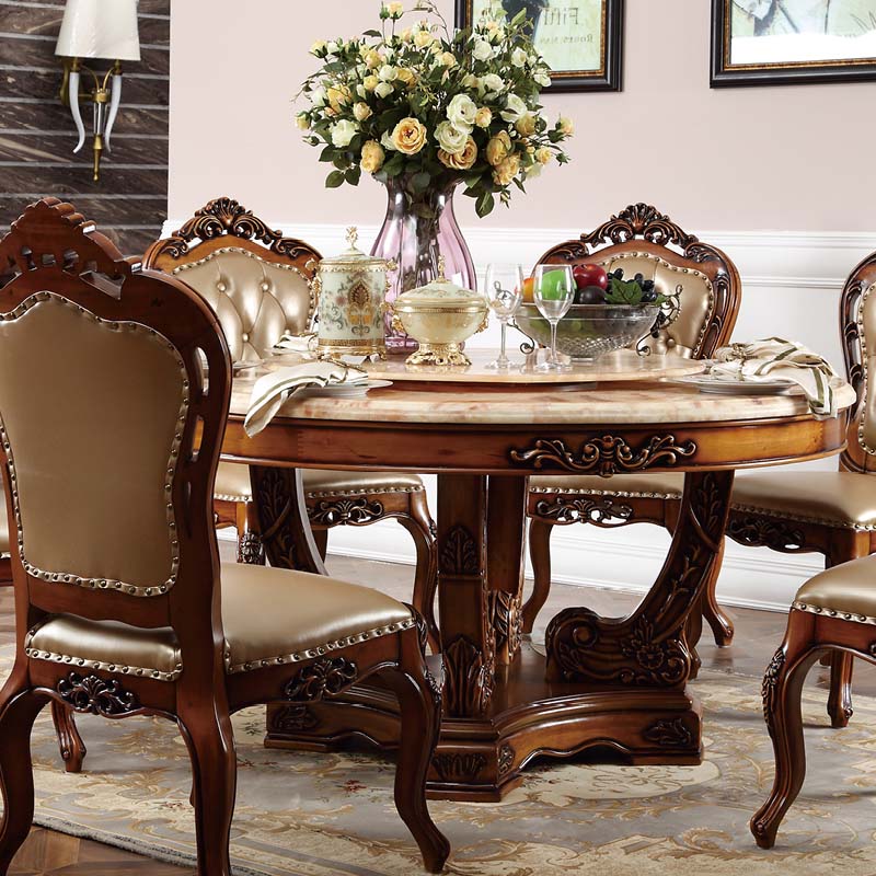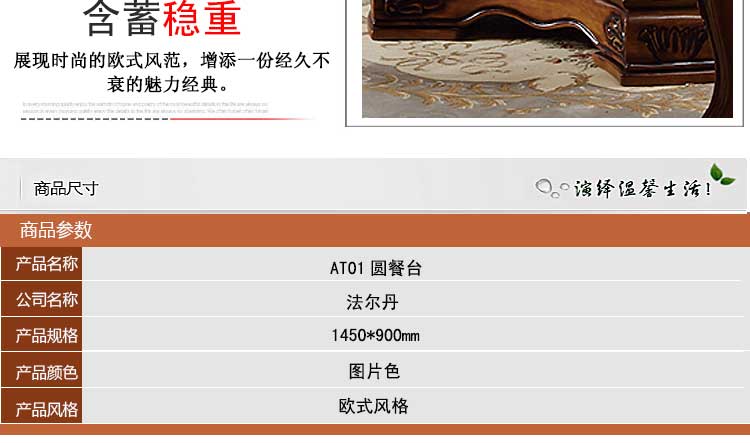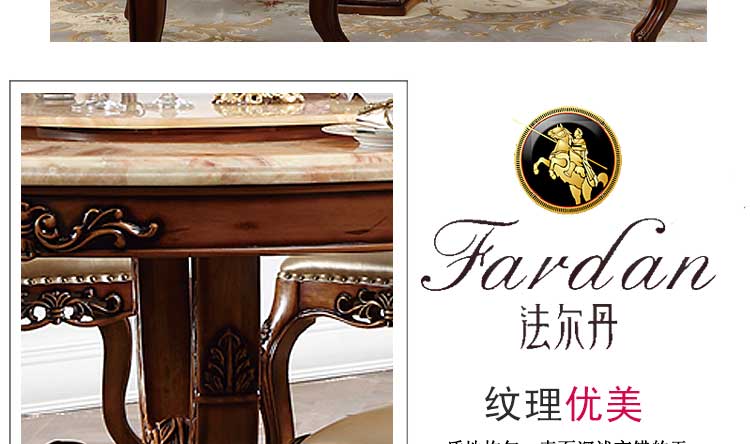 法尔丹新款欧式餐桌实木餐桌餐厅雕花圆形餐桌AT01圆餐台