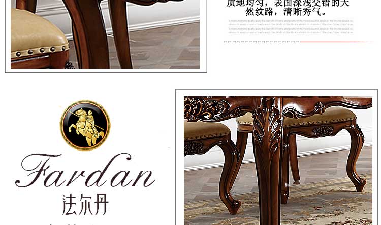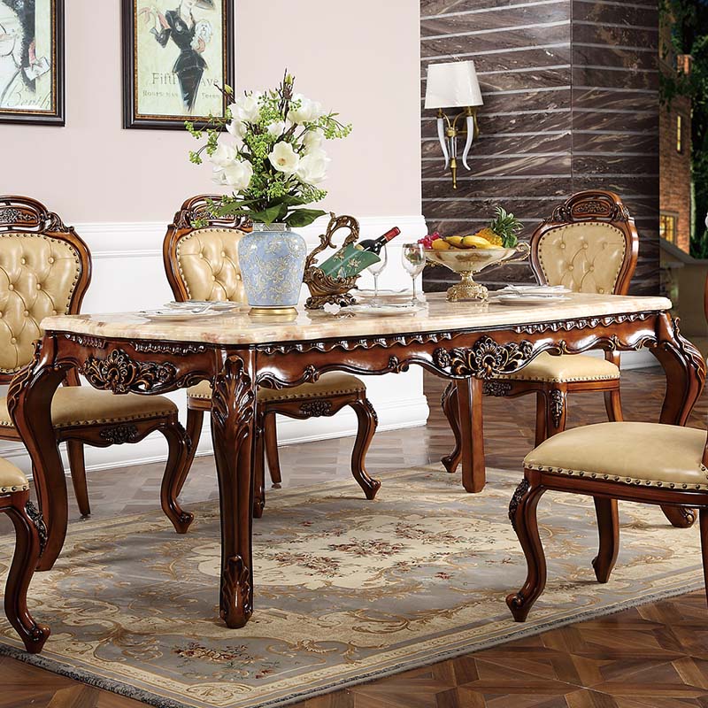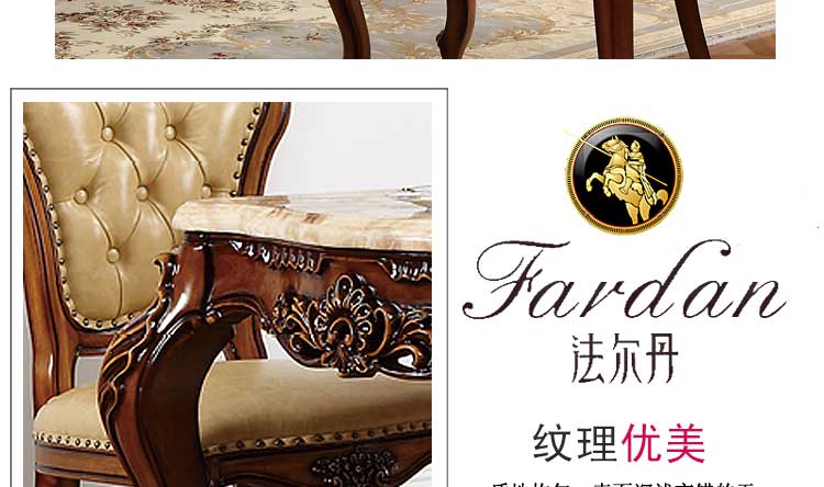 法尔丹欧式餐桌高档大理石长方形餐桌欧式大小户型实木饭桌CT01 长餐台