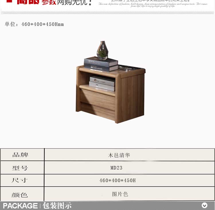 木邑清华 实木床头柜新款中式床头柜 抽屉柜 角柜整装储物柜 MD23