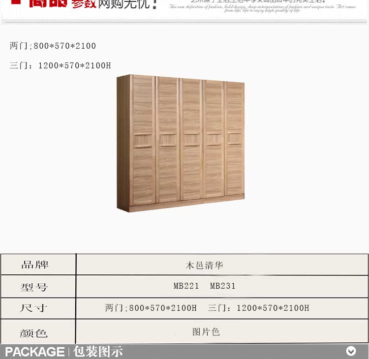 木邑清华 大衣柜储物柜中式卧室衣柜衣橱木质整体衣柜 MB221 MB231