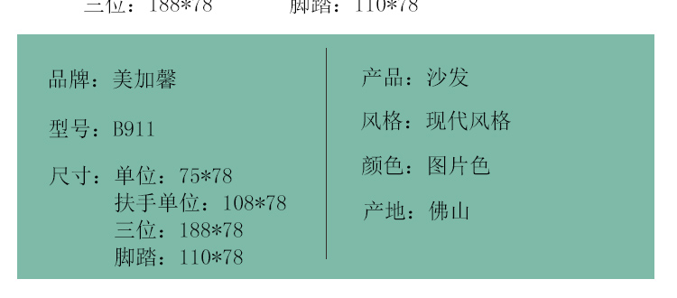外围尺寸:单位:75*78cm、 扶手单位:108*78cm、 三位:188*78cm、 脚踏:110*78cm。