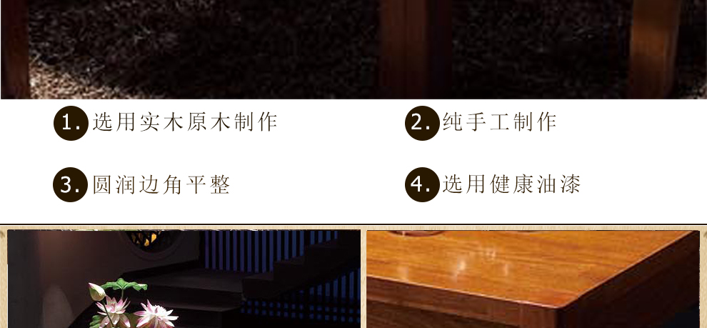100%天然实木面板,结构均匀紧致,文理清晰优美,具有天然高强度耐磨性且不易开裂,散发着古朴雅致的气息,唯美精致,华丽圆润。
