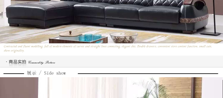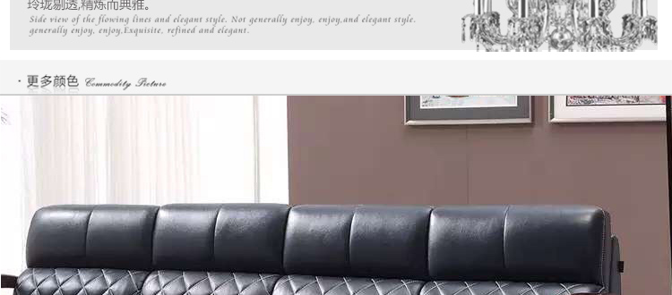沙发真皮的,款式也不错,摆在客厅里很显档次,做工和质量都蛮好,客户服务好,很满意的一次购物!