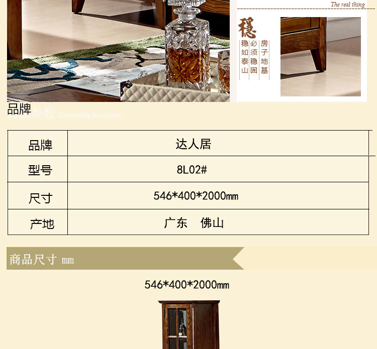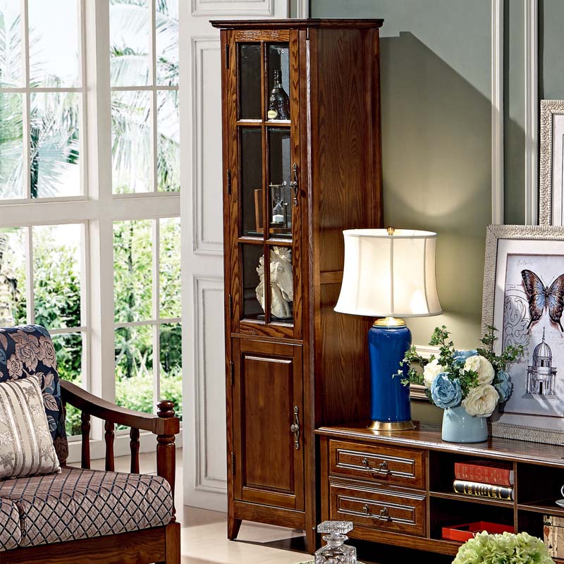 达人居 单门酒柜白腊木酒柜客厅储物柜玻璃门酒柜 8L02#