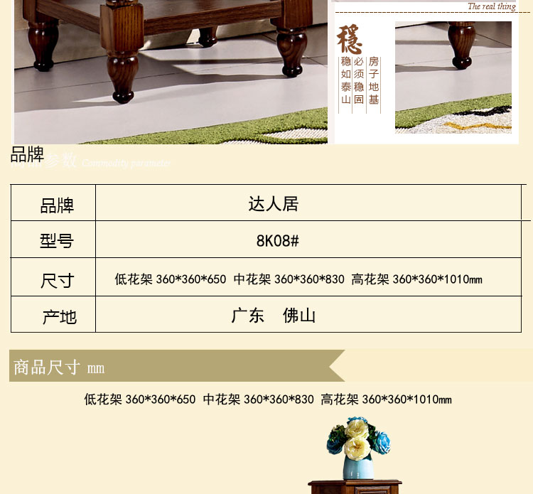 外围尺寸 低花架360*360*650 中花架360*360*830 高花架360*360*1010mm