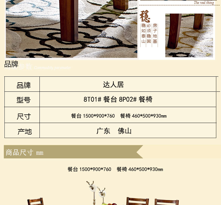 外围尺寸 餐台1500*900*760 餐椅460*500*930mm