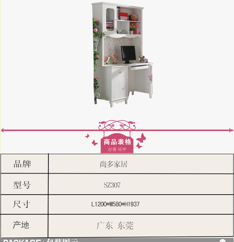 尚多家具 厂家直销新款书柜 韩式风格简约宜家书柜 儿童书桌 SZ307