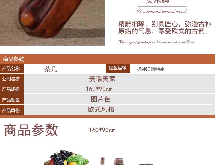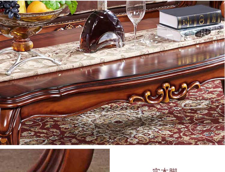 美瑞美家 家具欧式客厅实木欧式雕花茶几 深色茶桌 6003