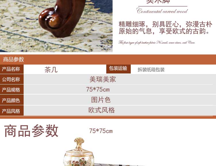 美瑞美家 欧式茶几边几 边几 欧式边几深色 客厅实木边几 1601