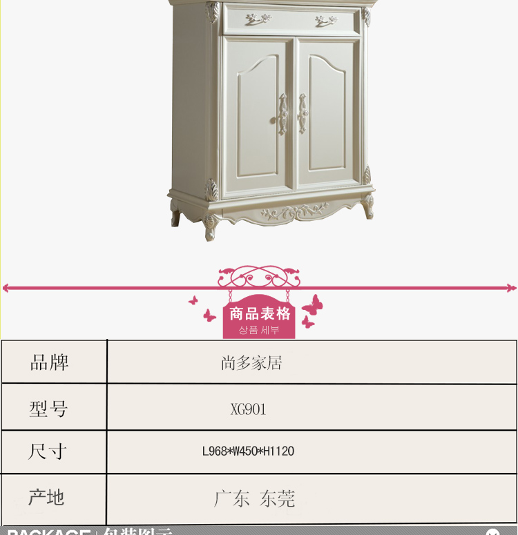 尚多家具 美式鞋柜 象牙白+银箔鞋柜 厂家直销高档宜家鞋柜 XG901