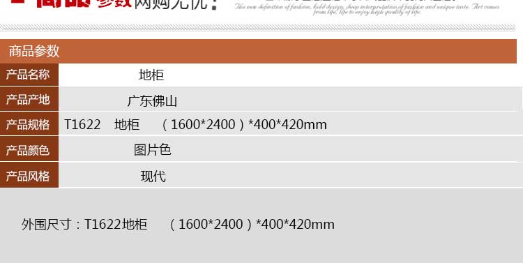 外围尺寸:T1622地柜(1600*2400)*400*420mm