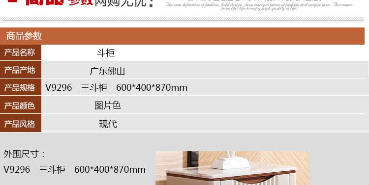 外围尺寸:V9296 三斗柜 600*400*870mm