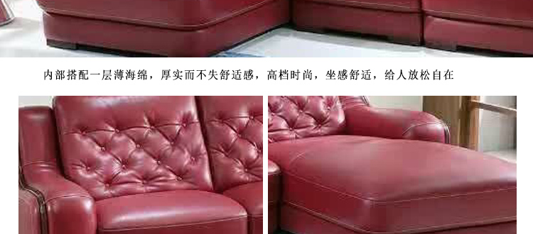 沙发整体很大气,皮质手感不错,厚度适中,细节处理的不错,适合客厅的风格,这款沙发满意 好