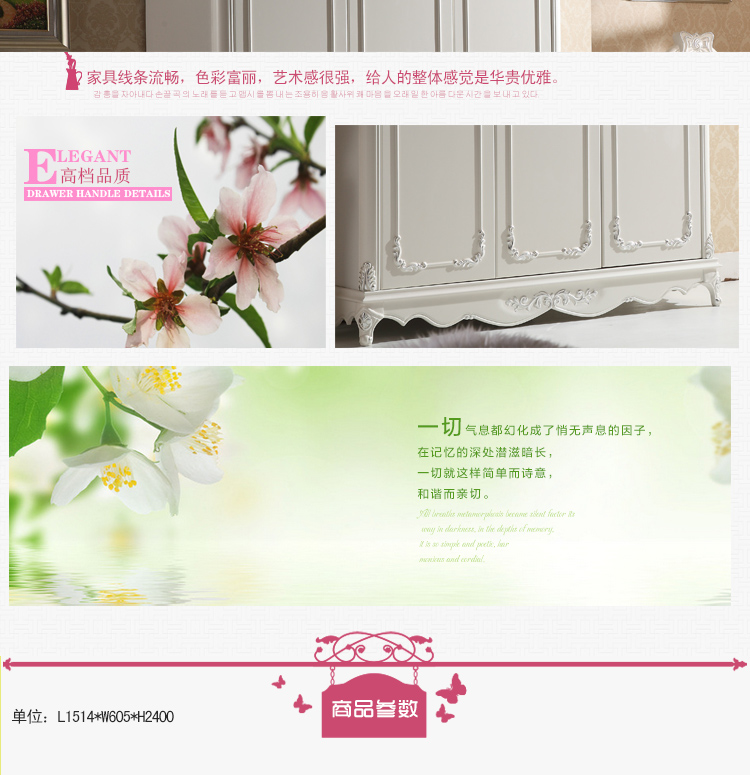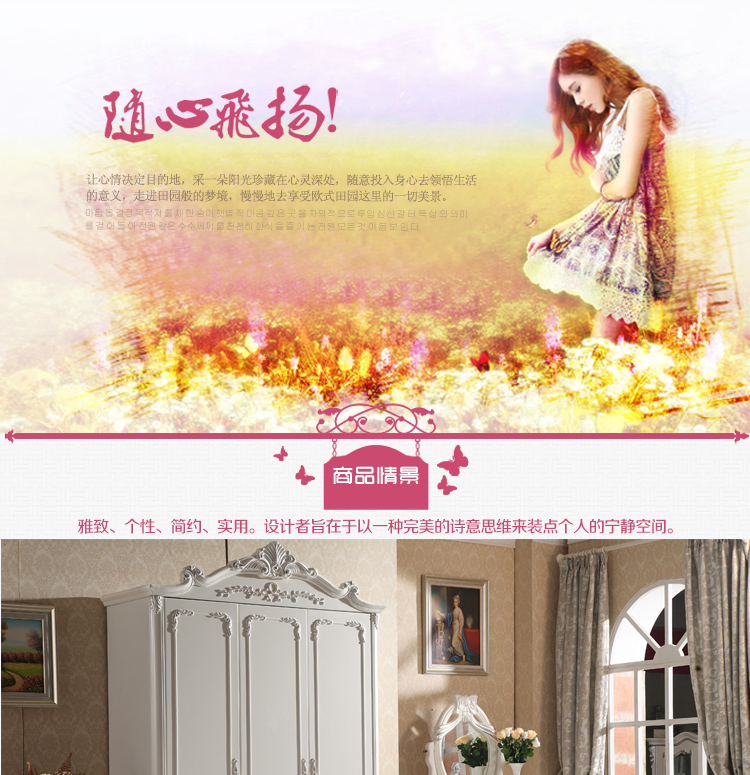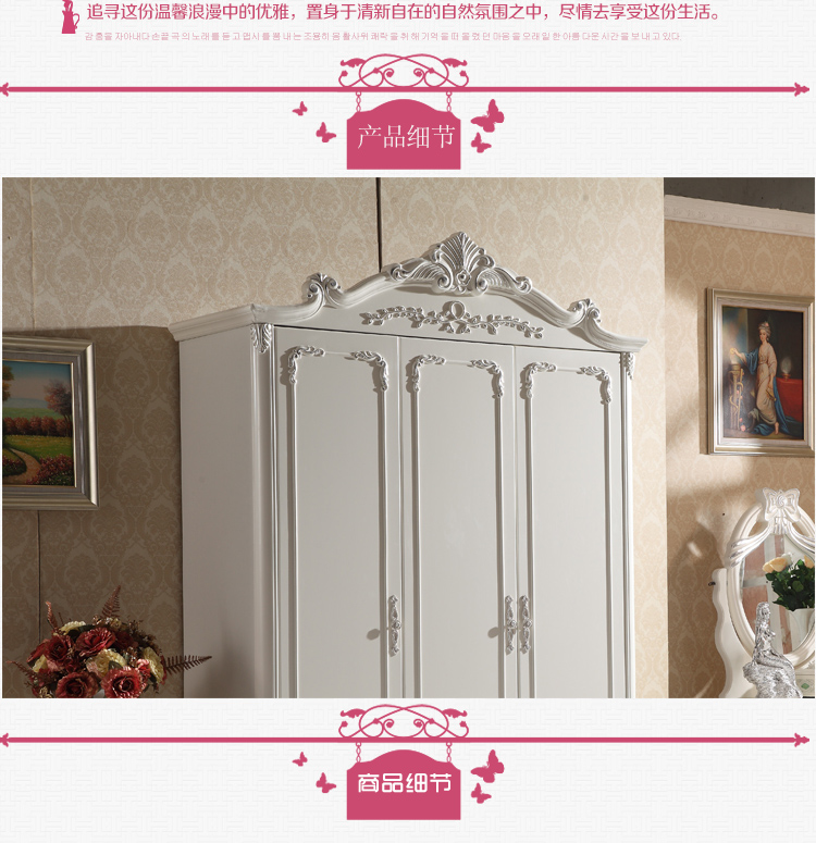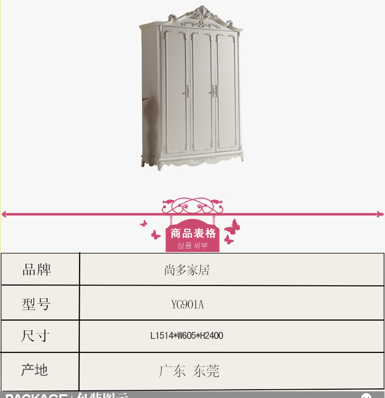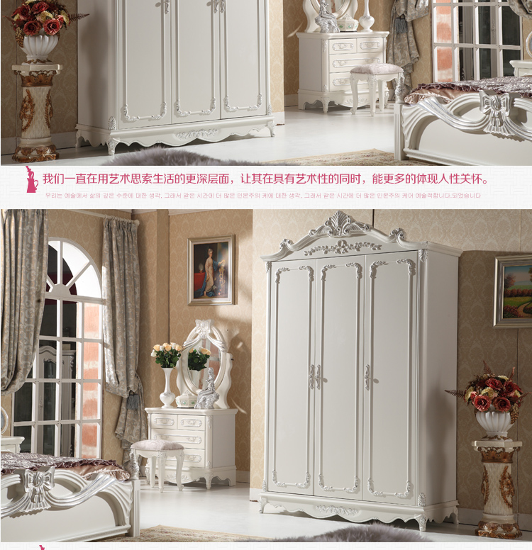 尚多家居 象牙白+银箔做旧美式雕花 卧室 三门衣柜大衣橱 YG901A