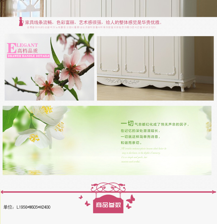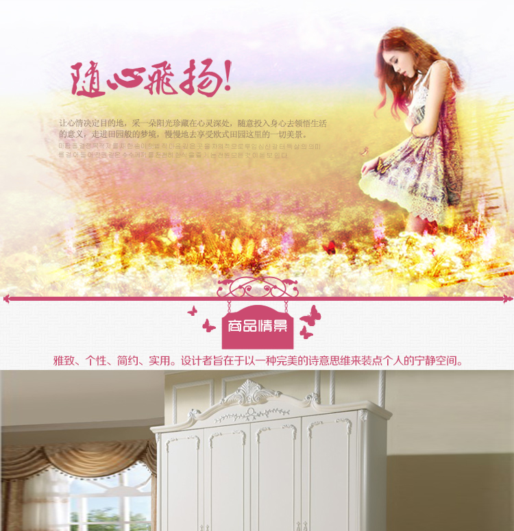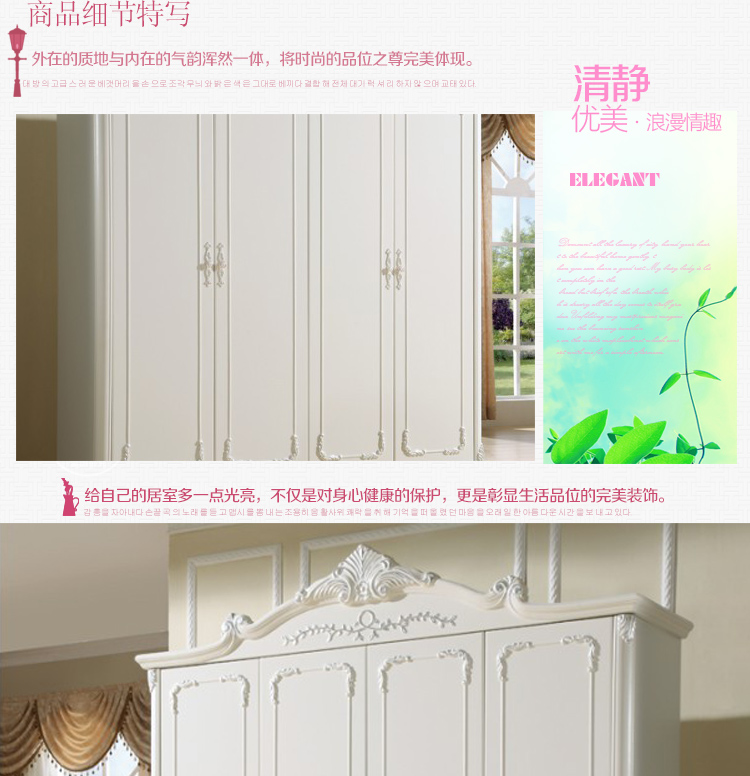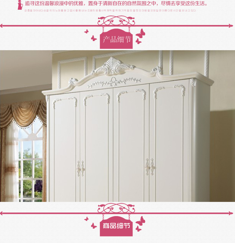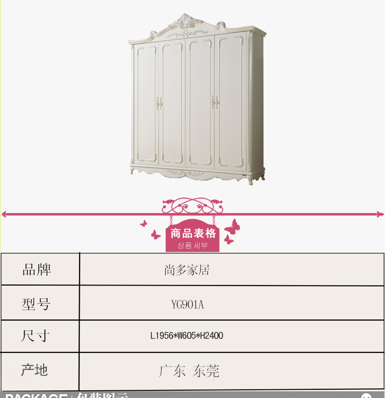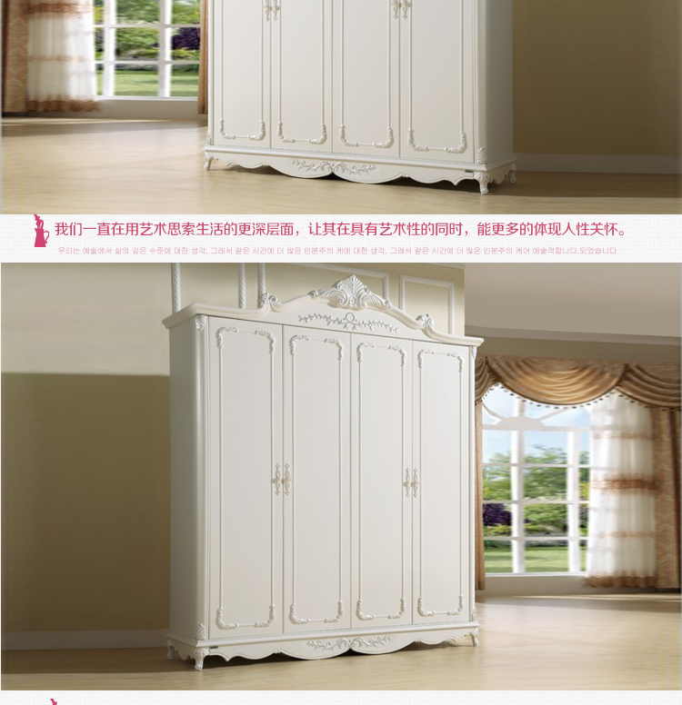 尚多家居 象牙白+银箔做旧美式雕花 卧室 四门衣柜大衣橱 YG901A