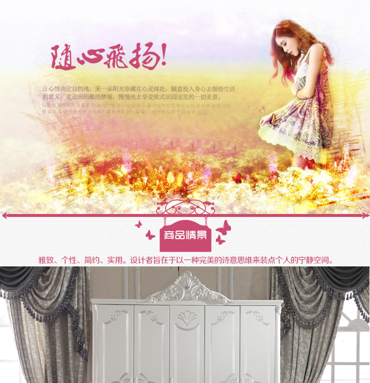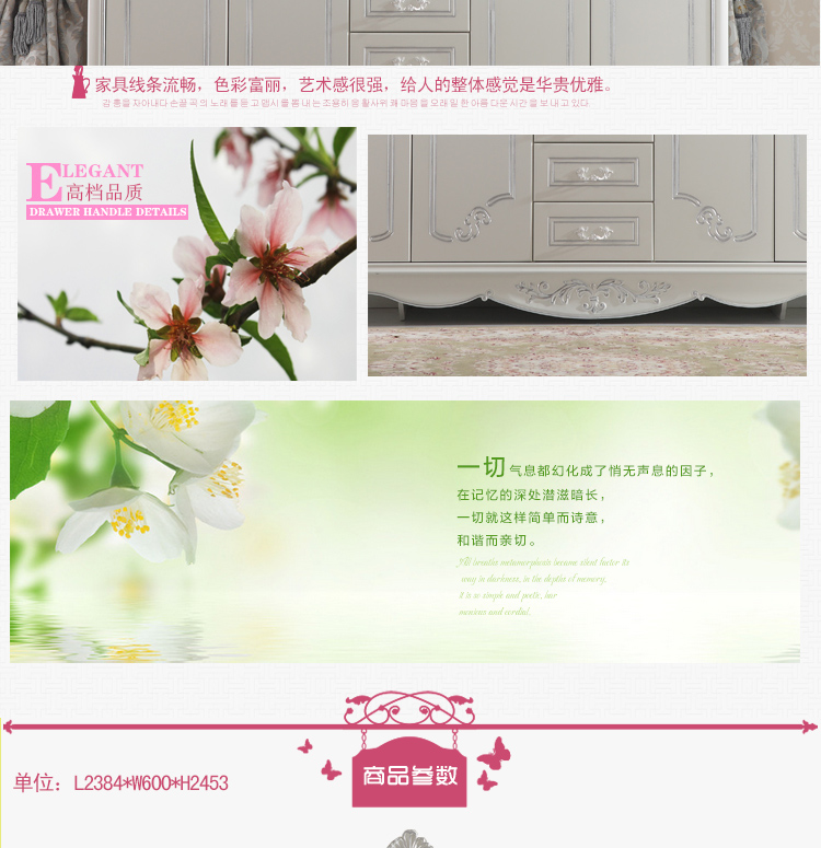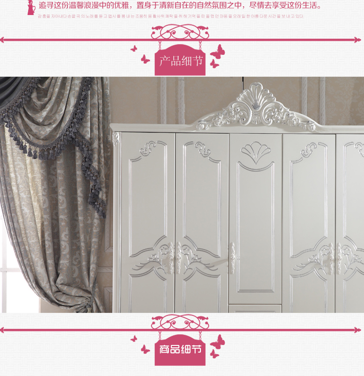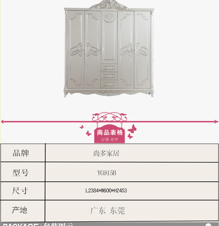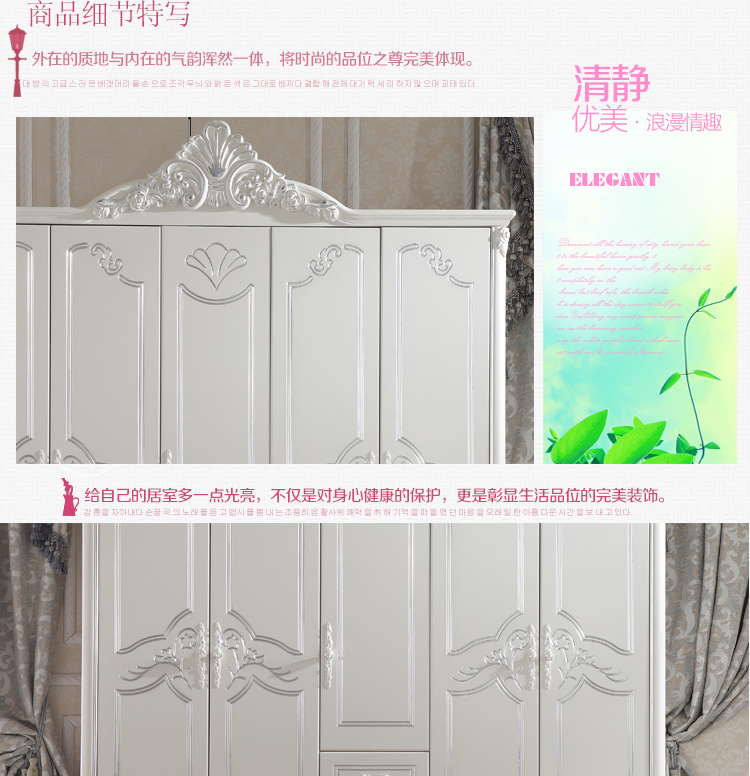尚多家居 卧室 五门衣柜大衣橱象牙白+银箔做旧美式雕花 YG915B