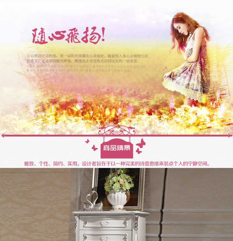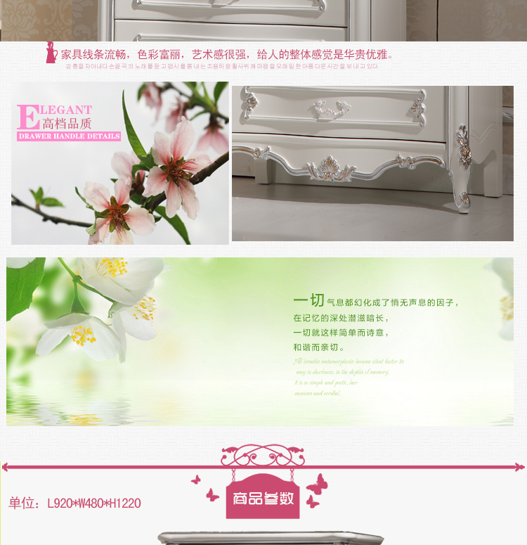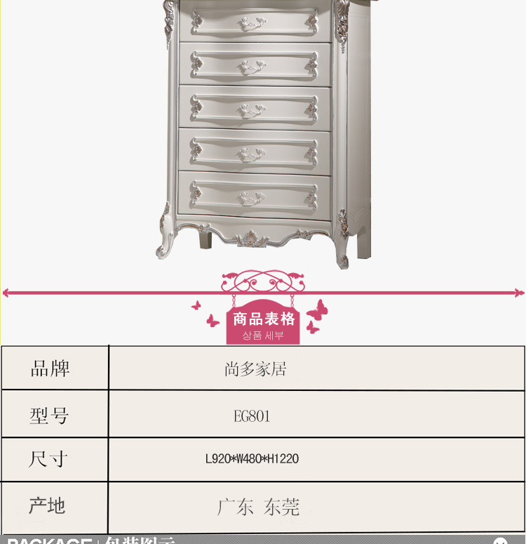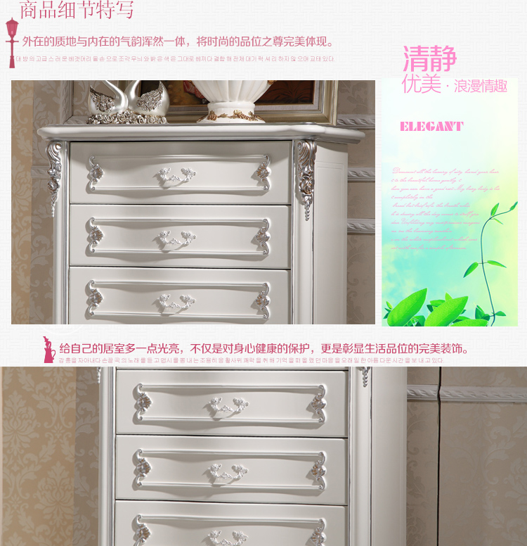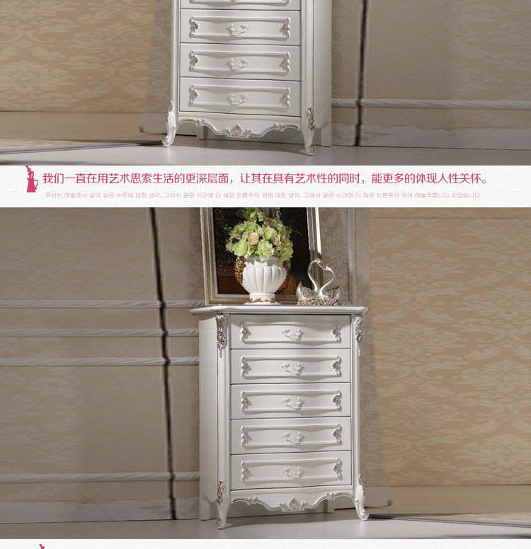 尚多家具 厂家直销新款象牙白+银箔做旧五斗柜 简约卧室五斗柜 EG801