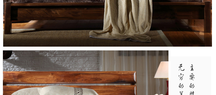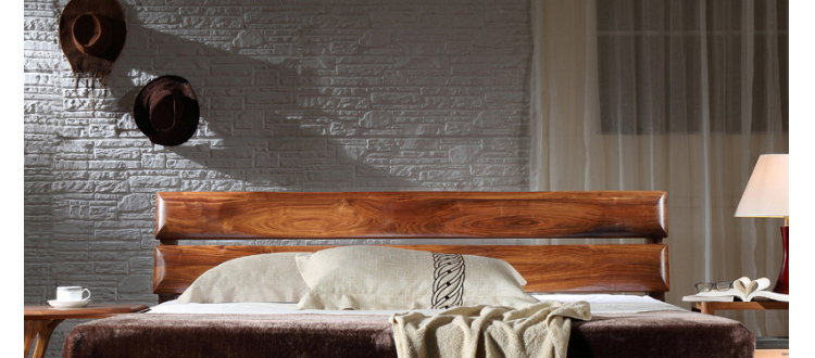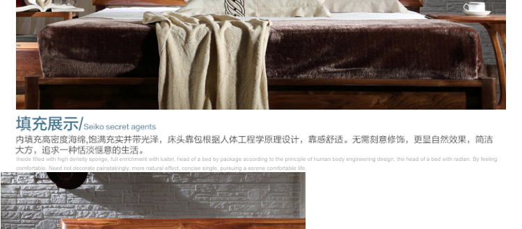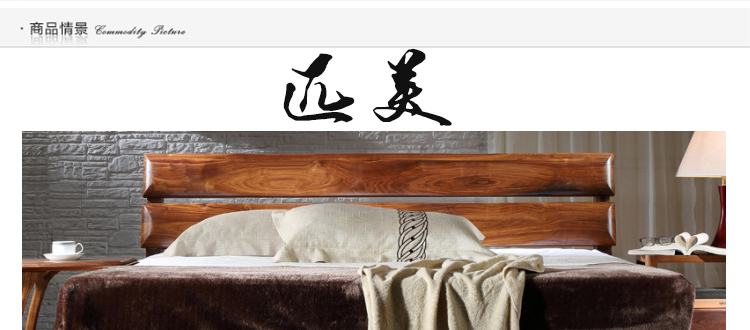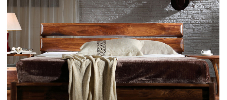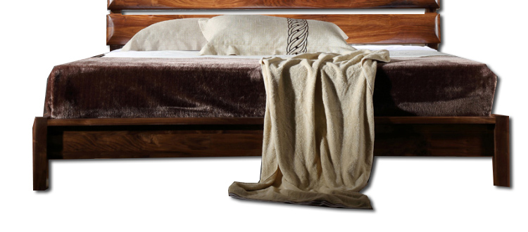 匹美卧室现代简约风格木质床北美黑胡桃双人床大小户型高档床H032床