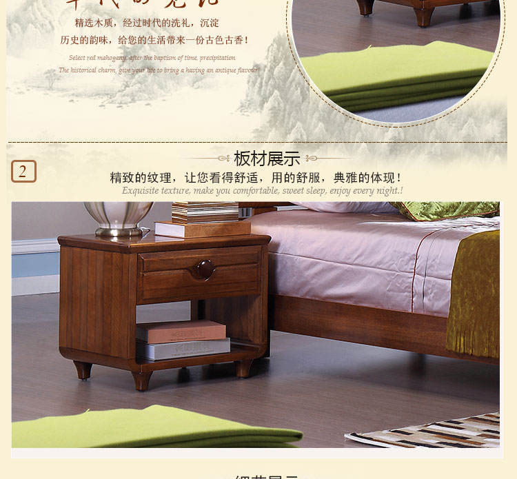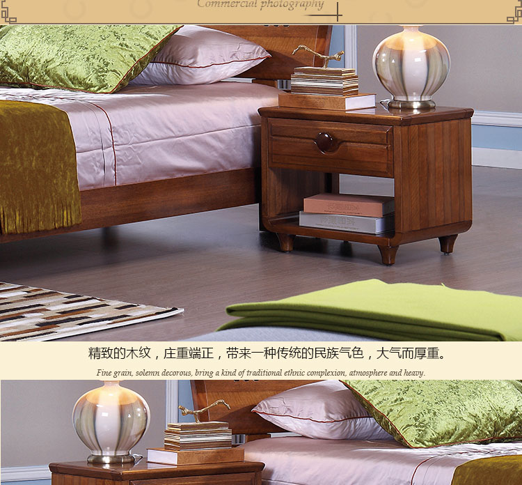 木邑清华 卧室床头柜实木床边储物柜带抽床边收纳柜 E703C