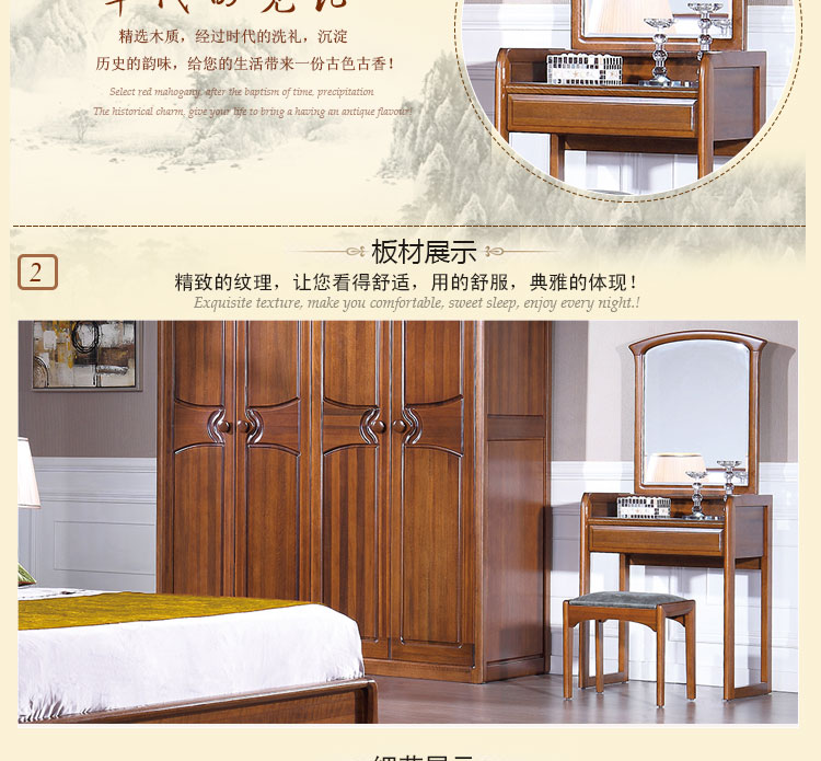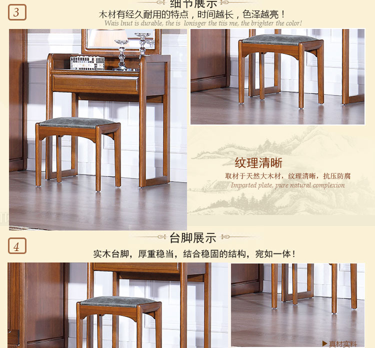 木邑清华 新款妆台妆凳组合卧室实木梳妆台梳妆凳组合 E765D妆台E700D妆凳
