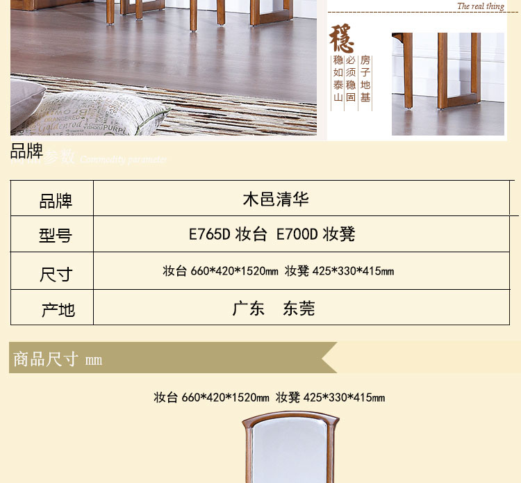 外围尺寸 妆台 660*420*1520H 妆凳 425*330*415H