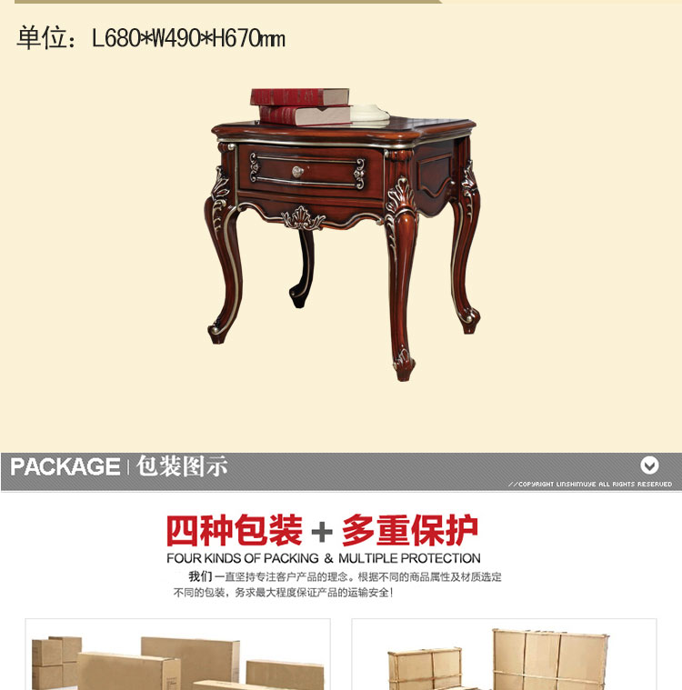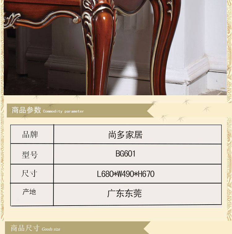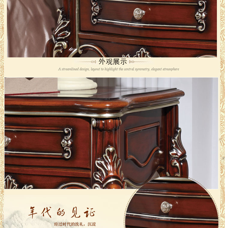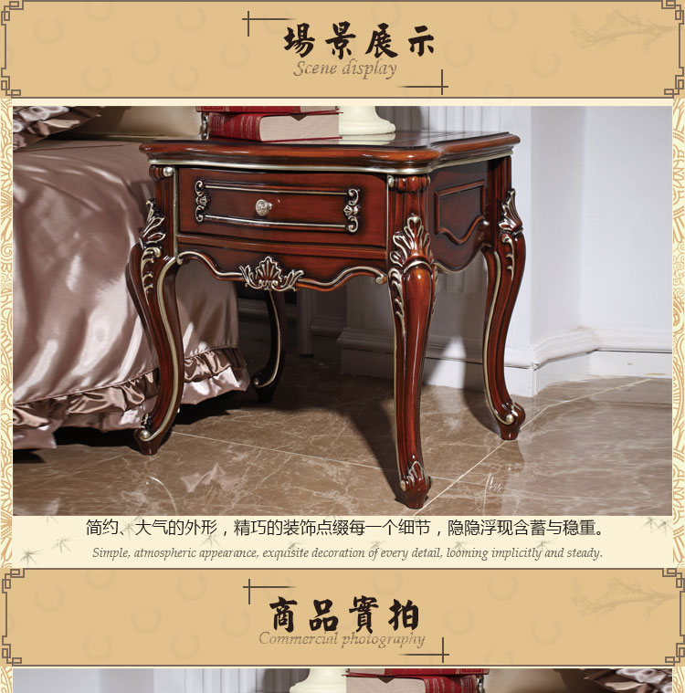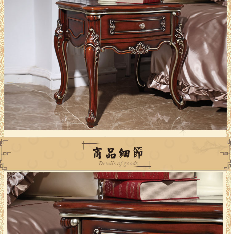 尚多家居 雕花床头柜抽屉储物收纳柜深色+描香槟金床头柜 BG601