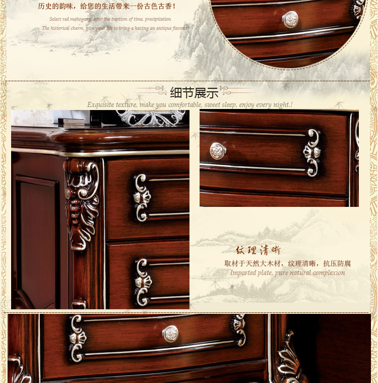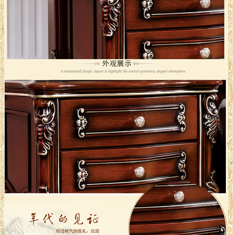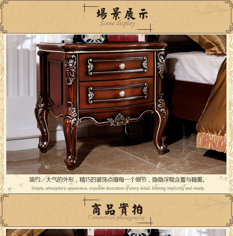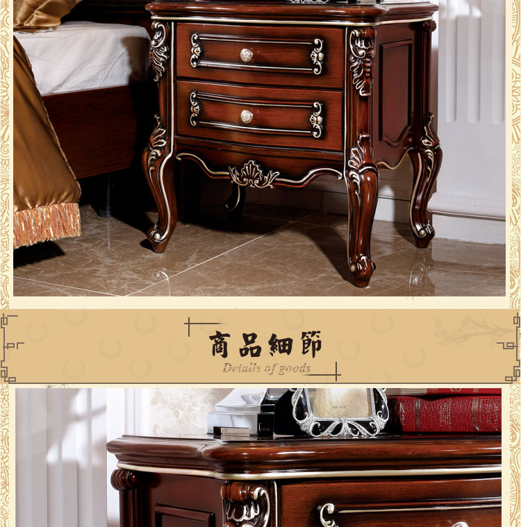 尚多家居 雕花床头柜抽屉储物收纳柜深色+描香槟金床头柜 BG602