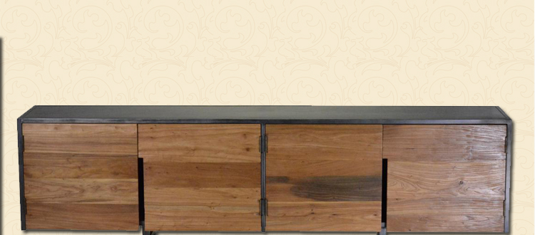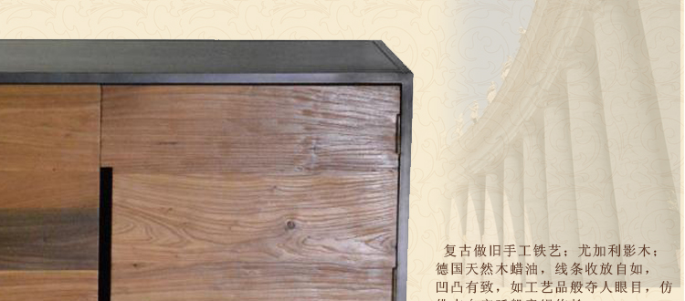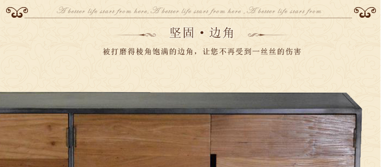 匹美家具电视柜实木简约现代客厅厅柜地柜小户型复古铁艺电视柜T07