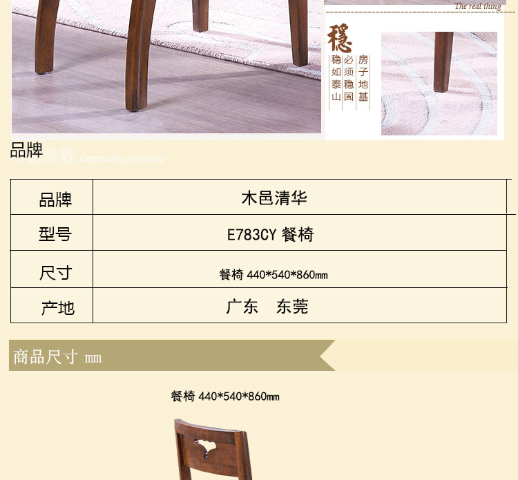 木邑清华 厂家直销新款餐椅实木餐椅餐厅无扶手餐椅 E783CY