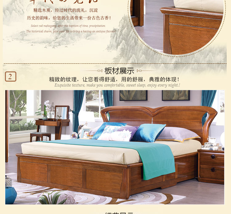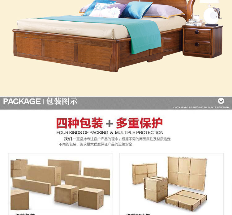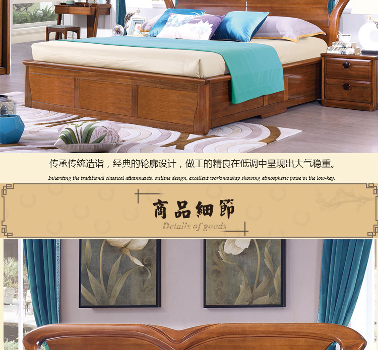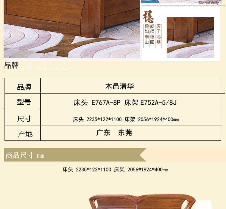 木邑清华 新款高箱床1.8米床卧室双人床实木床 E767A-8P