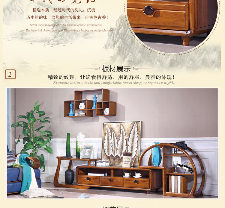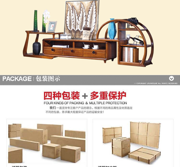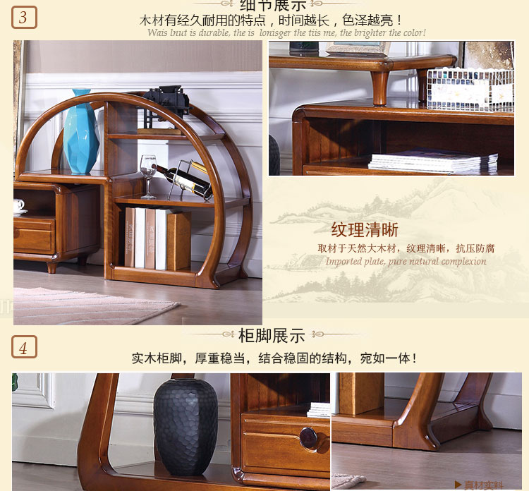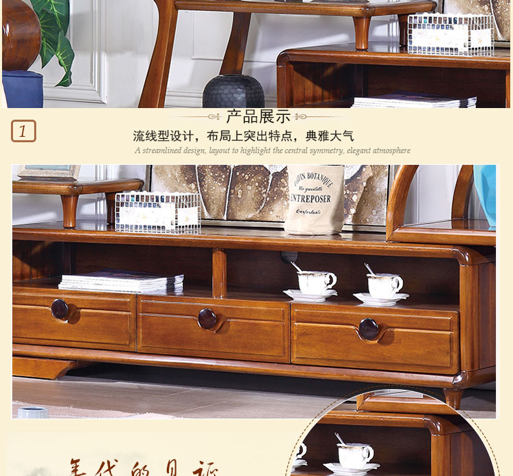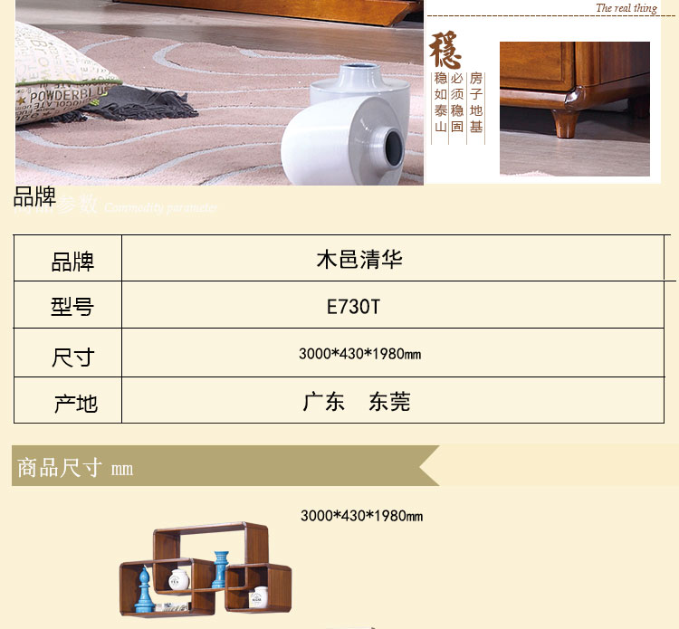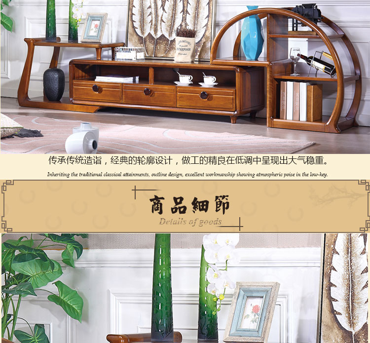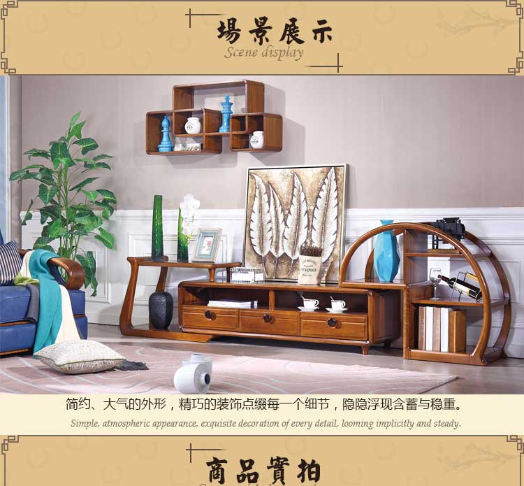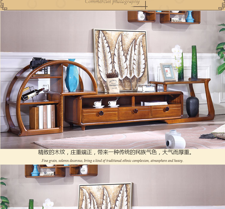 木邑清华 新款组合厅柜实木电视柜付柜边架挂架组合 E730T