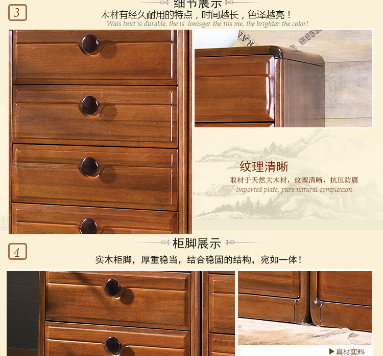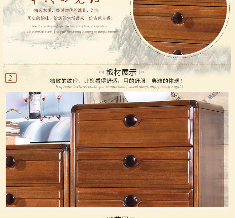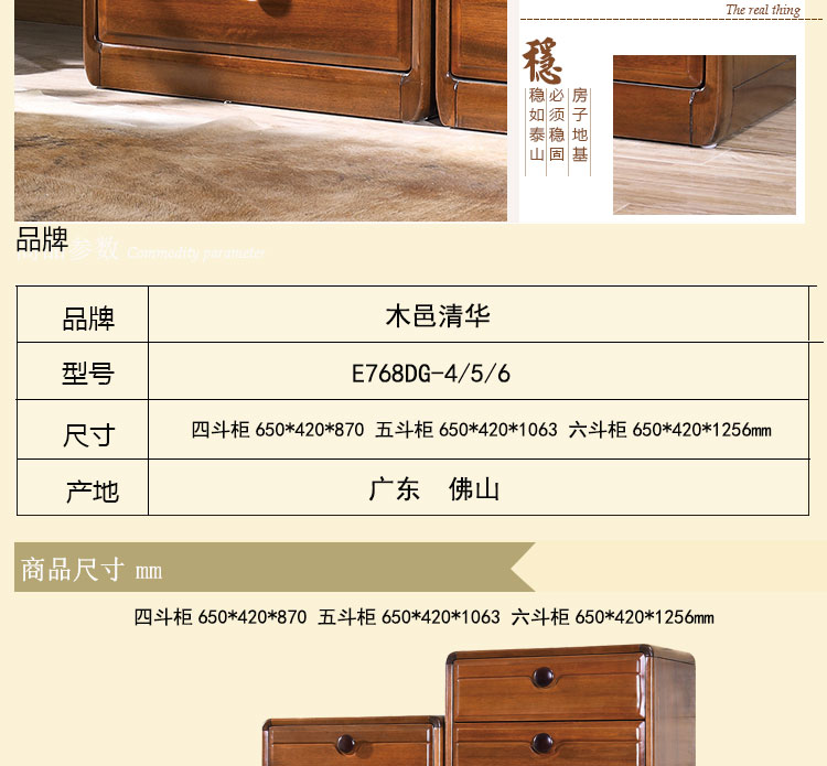木邑清华 卧室斗柜组合4斗柜5斗柜6斗柜组合实木斗柜 E768DG-4/5/6