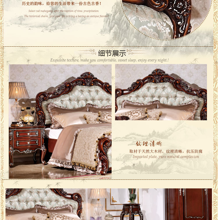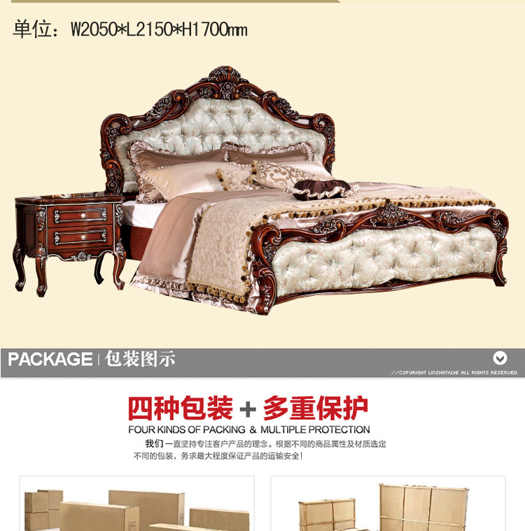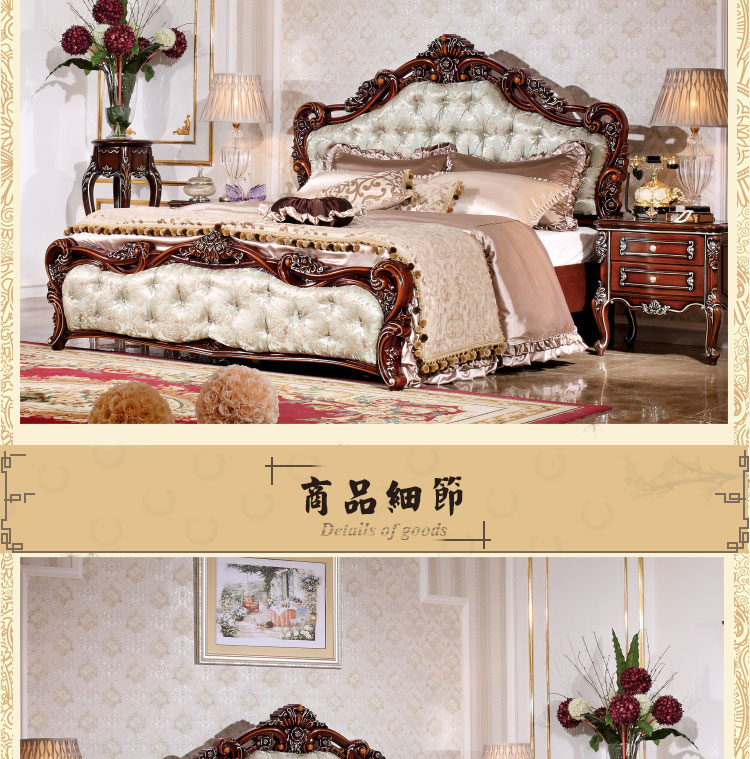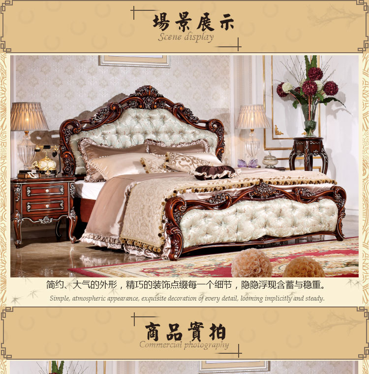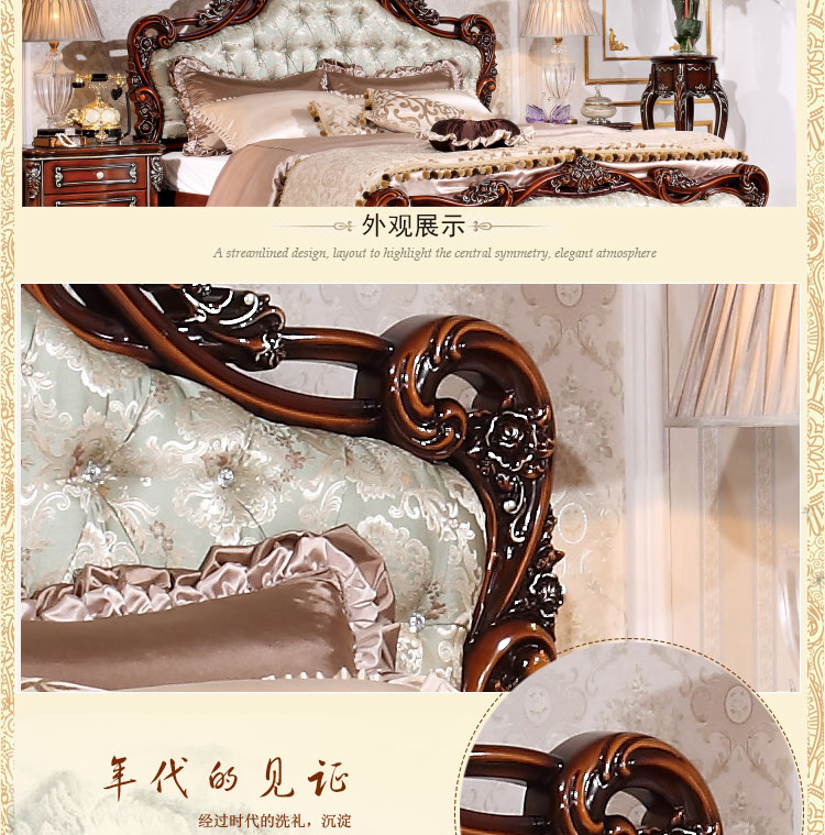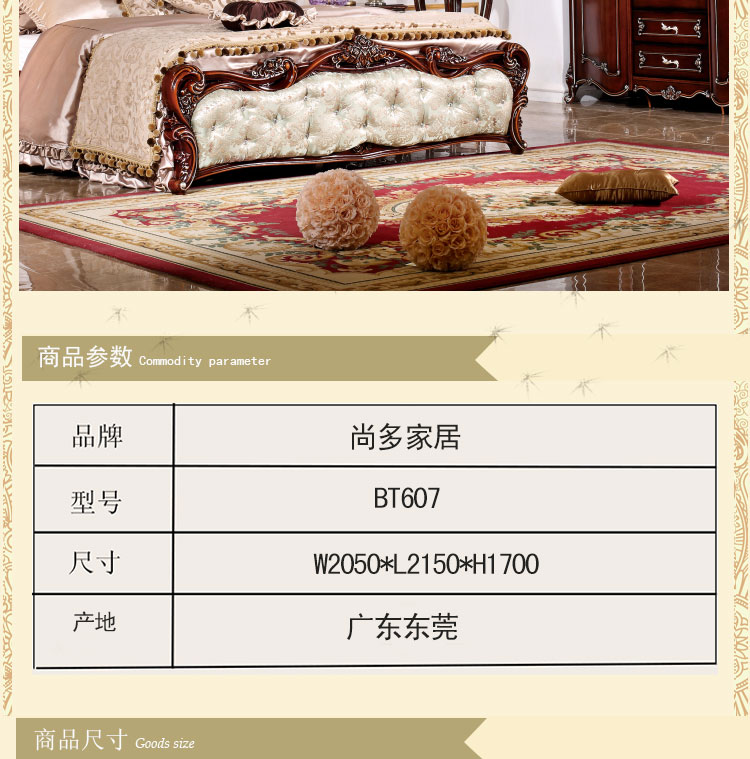 尚多家具 厂家直销新款床 卧室简约风大床 高档深色+描香槟金木床BT607