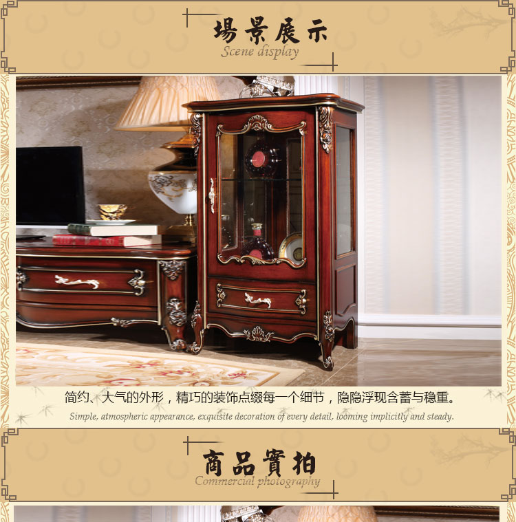 尚多家具 新款单门酒柜 深色+描香槟金单门酒柜 复古欧式单门酒柜JG605