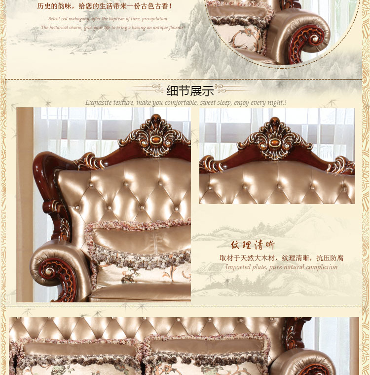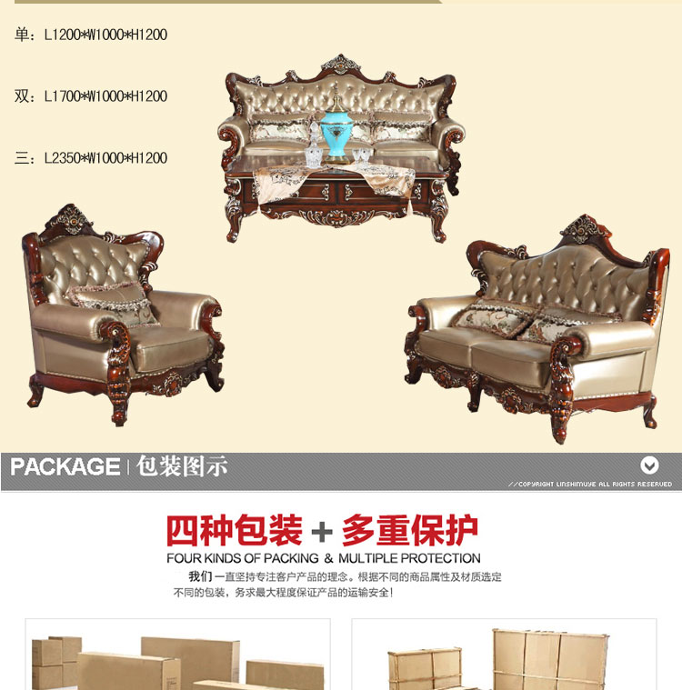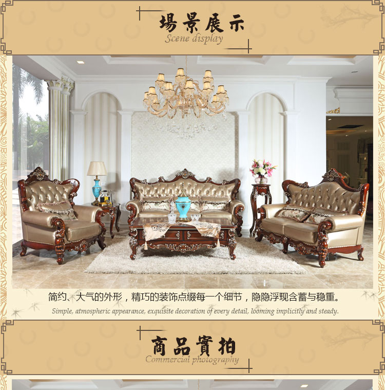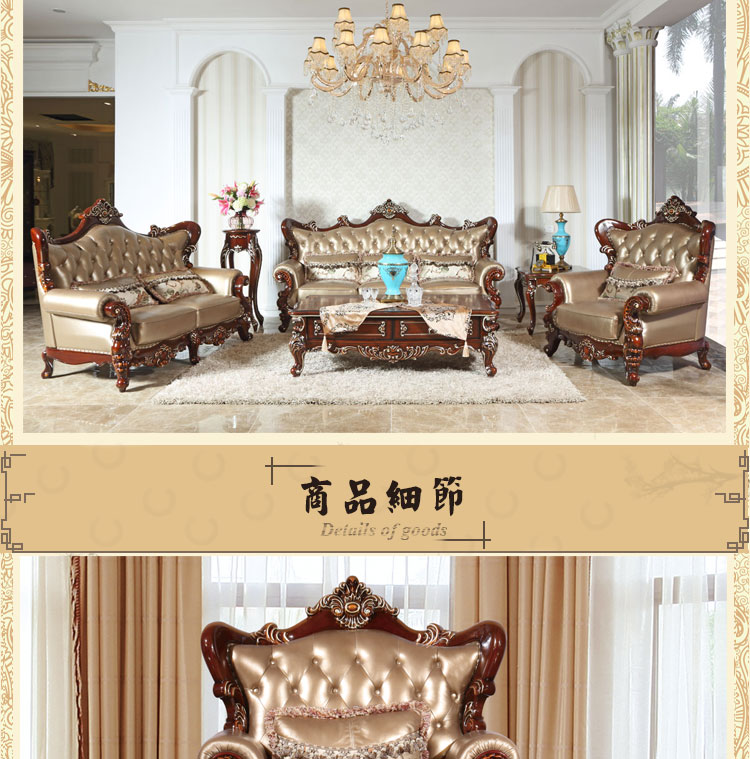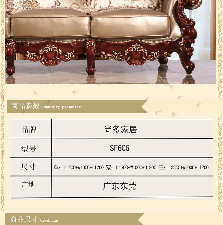 尚多家具 新款法式沙发 深色+描香槟金沙发123人位沙发 SF606