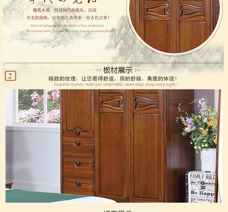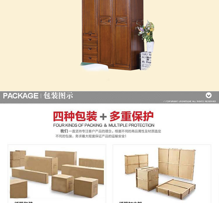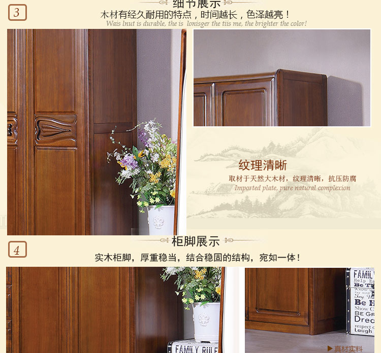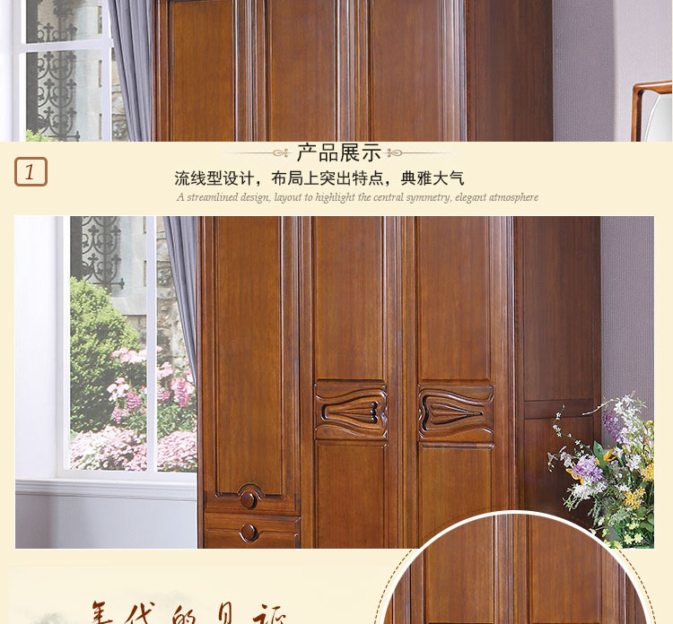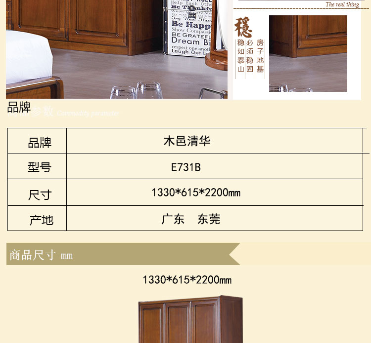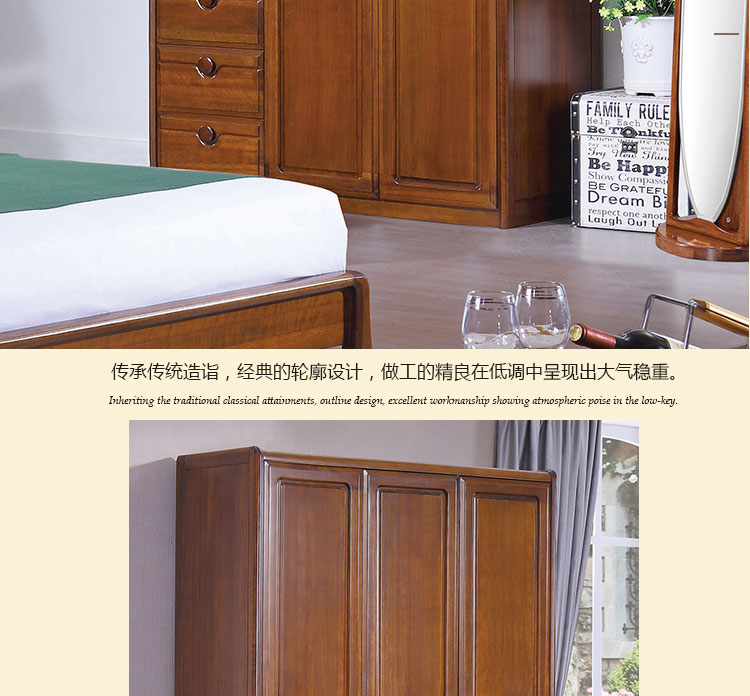 木邑清华 新款衣柜卧室三门衣柜实木衣柜平开门大衣柜 E731B