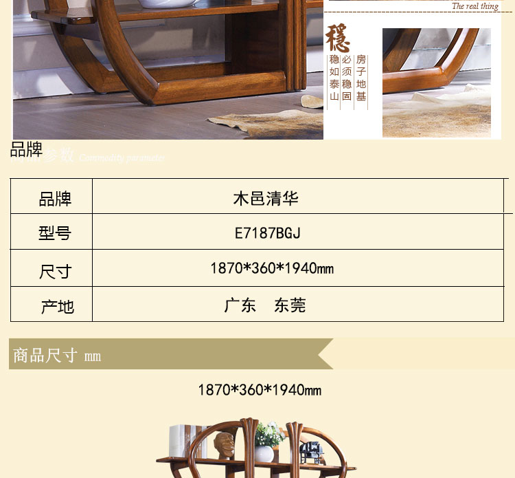 木邑清华 厂家直销客厅博古架置物架实木装饰架 E7187BGJ