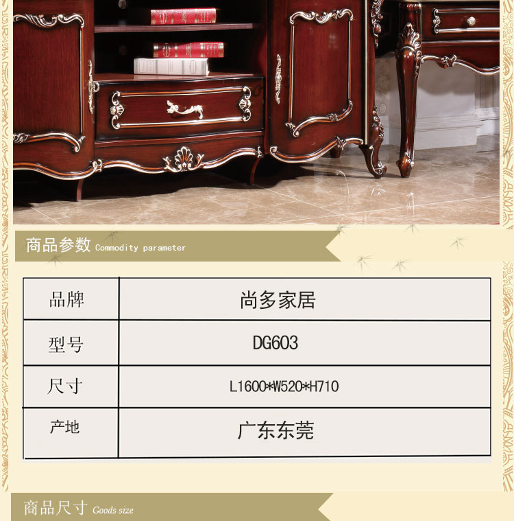 尚多家具 厂家直销深色+描香槟金电视柜 新款地柜 新款地柜电视柜 DG603