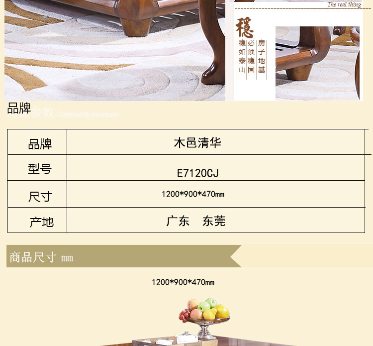 木邑清华 新款茶几客厅实木茶几百搭茶几北欧茶几 E7120CJ