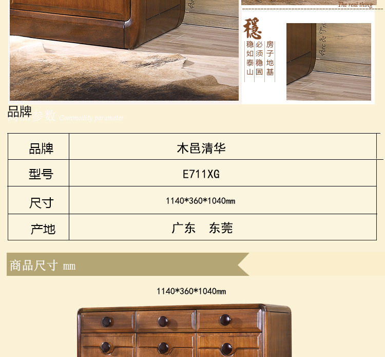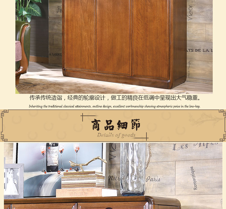木邑清华 新款鞋柜客厅实木鞋柜三门鞋柜储物柜 E711XG